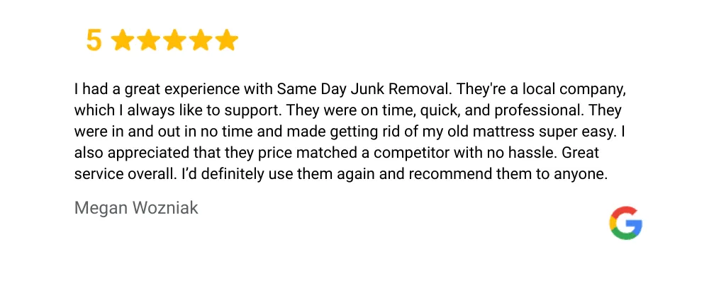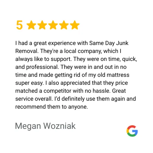 Here at Same Day Junk Removal Pros, we believe our job isn't just to haul junk but to give you relief. Our team works directly with you to understand what needs to go, provide transparent pricing upfront, and clear your space the same day you contact us. Whether it's a single couch or an entire basement packed with years of clutterāwe handle every detail so you don't have to.