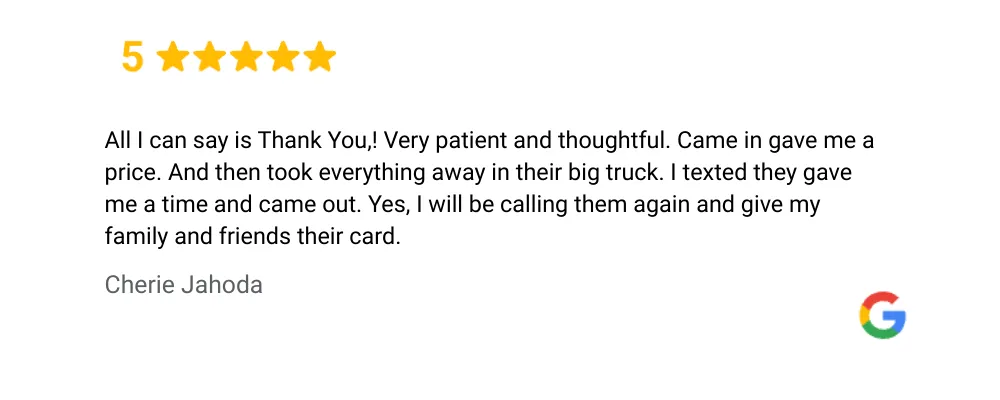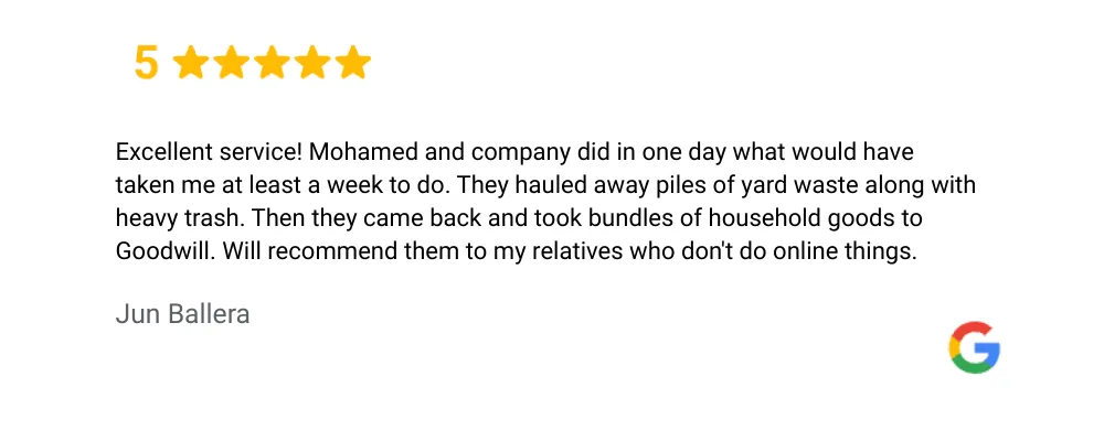 We show up same-day, work fast, and donate what we can to Goodwill so your unwanted items get a second life instead of going straight to the landfill. One customer said we did in one day what would've taken her a week. Another cleared their entire garage in an afternoon and finally got their car back inside. Serving Seattle, Renton, Bellevue, and surrounding areas. Professional service that costs less than the big franchise companies and shows up when we say we will.